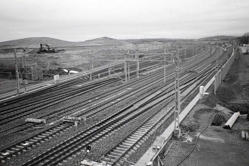 Här byggs järnvägen ut i norra Varberg till något som ska bli en rangerbangård framöver. Det kommer att bli många godsvagnar på spåren och utöver det persontågen mellan Malmö och Göteborg. Tänk vilket jobb och ansvar de har som ska se till att tågen och vagnarna kommer på rätt spår. Det finns stort utrymme för att filosofera en aning kring spår. När man vaknar på morgonen får man bestämma hur dagen ska bli, vilket spår ska jag ta idag, hur ska jag lägga upp dagen? Skulle man märka, när kvällen kommer, att man tagit fel spår är det ju bara att tänka sig för nästa dag och då välja rätt. Så långt är det enkelt. I livet gäller det att välja rätt spår: Vilket jobb ska man välja, med vem ska man gifta sig, var ska man bo m.m. Då är det så viktigt att man väljer rätt. Skulle det bli helt galet går det väl att få tag i ett växellok som hjälper till att byta spår. -Ja detta var tankar som kom till mig när jag från viadukten såg alla dessa spår.
