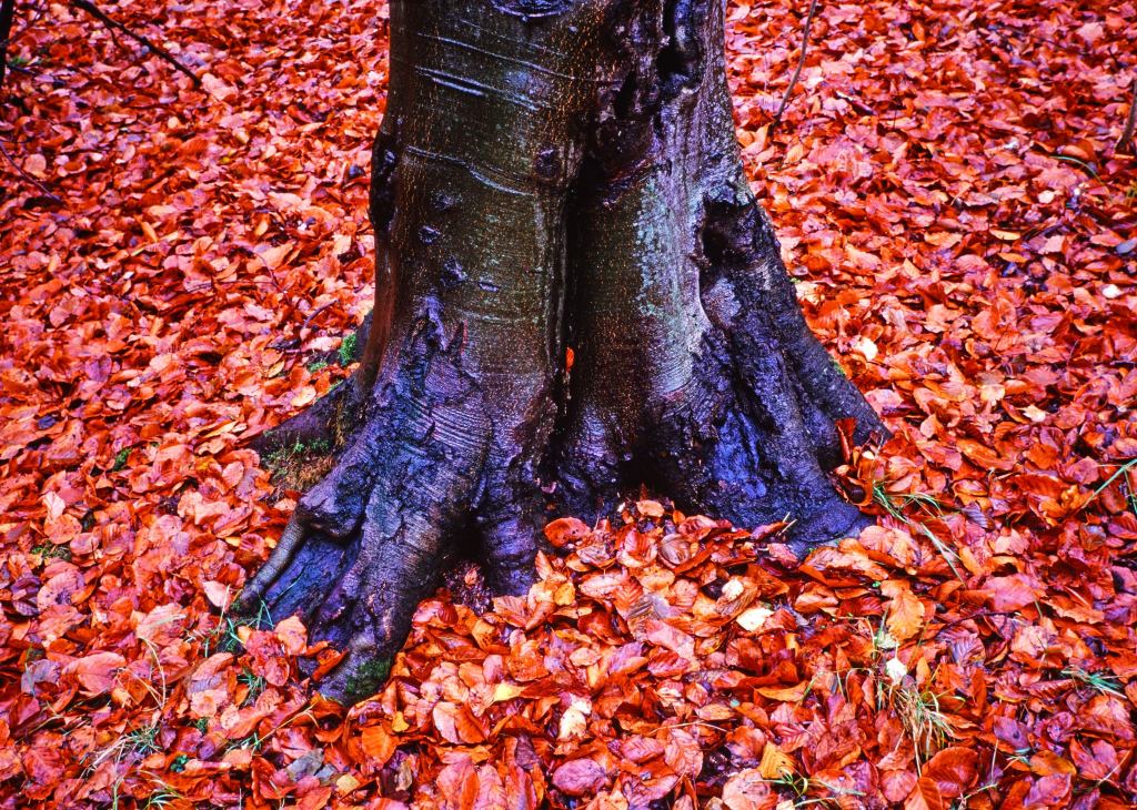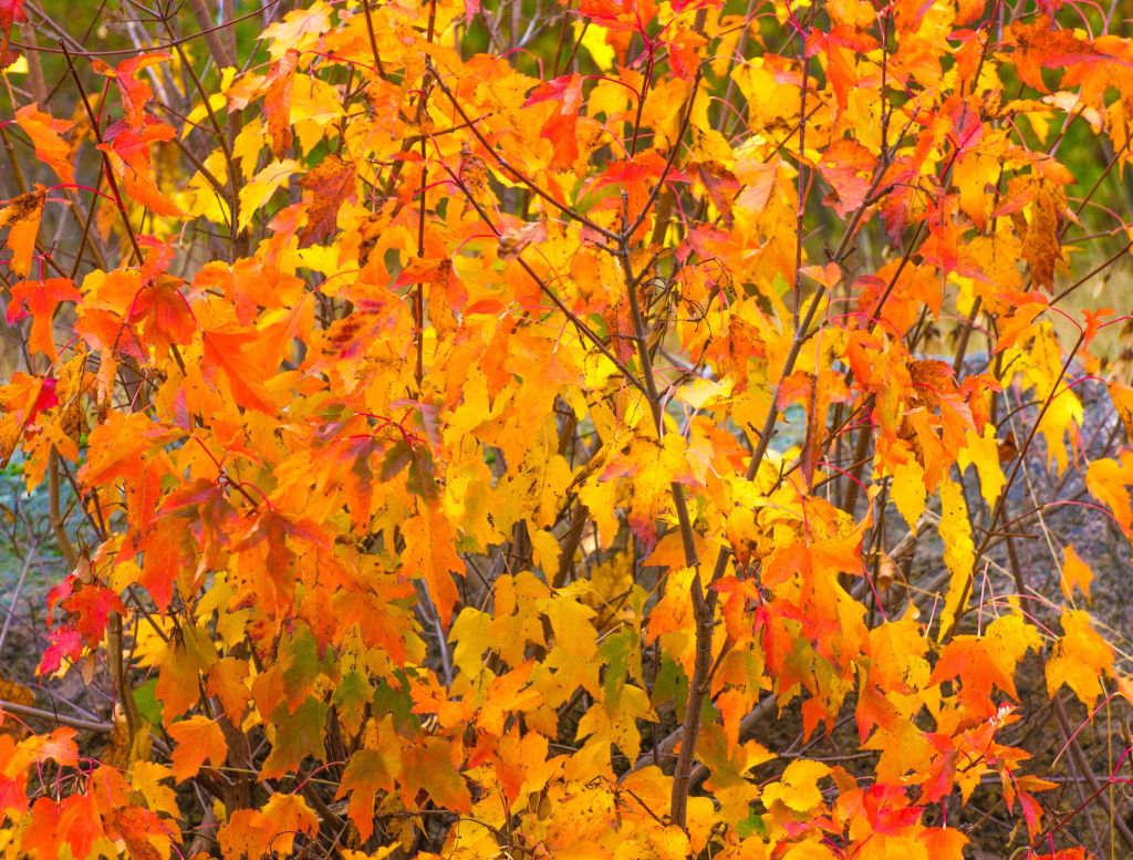I Gamla Testamentet berättas det om att när Moses var ute och gick i öknen fick han se en brinnande buske som dessutom talade. Det visade sig att det var gud som uppenbarade sig och talade till Moses från busken. Moses frågade busken/gud vad han heter och fick till svar: ”Jag Är”. Det är ett udda namn som består av både subjektet Jag och predikatet Är. Många teologer och filosofer har så klart försökt att tolka detta ovanliga namn och kommit fram till olika slutsatser. Jag tror att namnet bygger på det som vi fick lära oss i skolan om tempus. Ni kommer säkert ihåg Imperfekt som är förfluten tid, Presens som är nutid och Futurum som är framtid. Tänker vi efter noga så är det så att nuet omedelbart övergår till ett då. Skulle man kunna fånga nuet i handen och titta på det så är det ett då. Nuet blir den punkt där framtiden, i en närmast ofattbar kraft, möter dåtiden. Där kan ingen människa vara för där är det glödhett. Den ende som kan vara där i det absoluta glödande och brinnande nuet är gud och där för kan han säga att han heter Jag Är. Därför uppenbarade han sig i en brinnande buske. Så tänker jag, speciellt när jag i veckan stannade till framför denna höstglödande buske.
