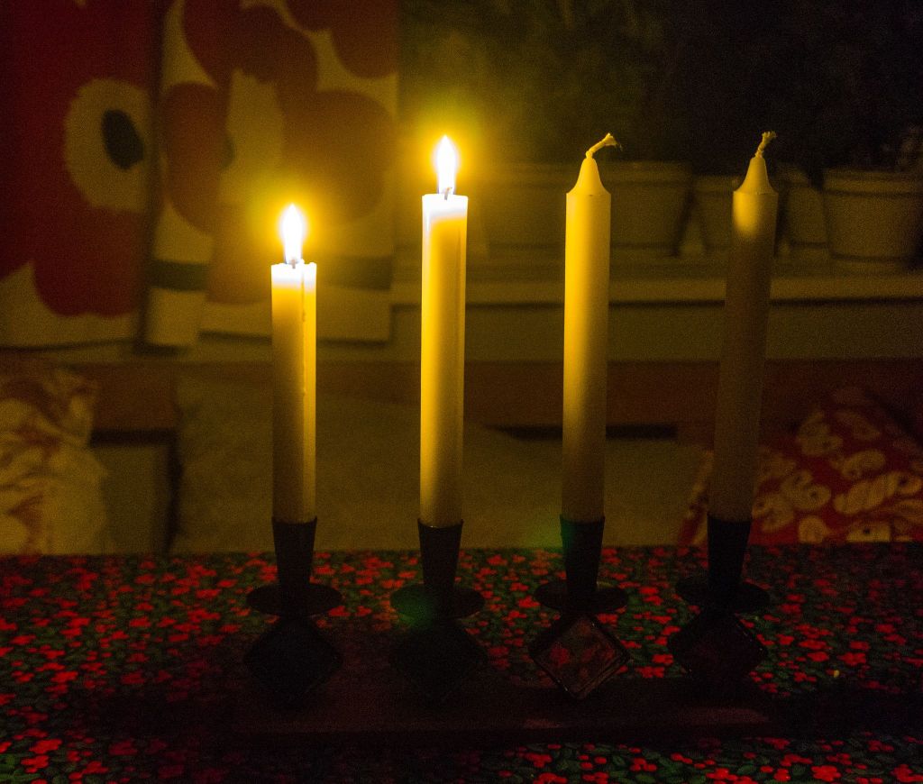 Nu är vi inne i den andra adventsveckan. Då har vi tänt två ljus och två är ännu inte tända. Så just nu råder det jämvikt mellan ljusen. Det får mig att tänka på Aristoteles som liknade livet vid en vagn som dras av två hästar. Den ena hästen är vild och kan få plötsliga infall som att dra iväg mot diket medan den andra är tam och lugnar den vilda hästen. Så kan våra liv vara: Ibland är vi vilda och får våra infall och ibland är vi kloka och eftertänksamma. Att på bästa sätt få balans mellan hästarna är det bästa för våra liv. Något att tänka på varje gång vi tänder det andra adventsljuset