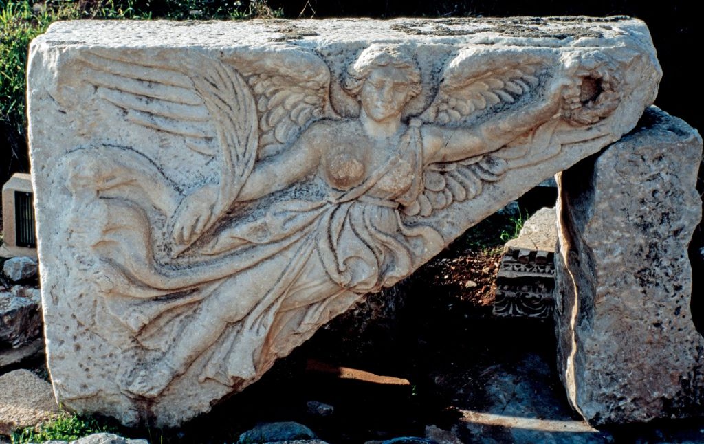 Den här bilden tog jag vid ett av mina besök i den antika staden Efesos som numera inte är den blomstrande stad som den en gång var. Den består numera av ruiner, en del i ganska gott skick. Bilden på stenen gillar jag. Den förställer, tror jag, gudinnan Artemis från Efesos, som dyrkades i staden och på andra ställen under antiken. Jag intalar mig att den haft en framträdande plats någonstans i staden. Filosofen Herakleitos bodde i Efesos. Han är känd för sitt uttryck ”Panta Rei” som betyder ”Allting flyter”. Kanske har han tittat på Artemis och blivit inspirerad att filosofera. Aposteln Paulus bodde tre år i Efesos och grundade där en av de första och större kristna församlingarna. Kanske har han sett bilden och tänkt att min religion är bättre än den som har Artemis som huvudperson och då har han blivit ännu starkare i sin tro på Jesus. Det sägs att Jesus mamma Maria flyttade till Efesos med aposteln Johannes efter det att Jesus korsfästs. Kanske hon också har tittat på Artemis. Någon gång på 400 talet e Kr bestämdes att Marias himmelsfärd ägde rum i Efesos. Jag tror att många av oss gärna tittar på bilder av kända personer och då kanske känner oss stärka. Där har vi nog en gemensam nämnare med folket i Efesos.