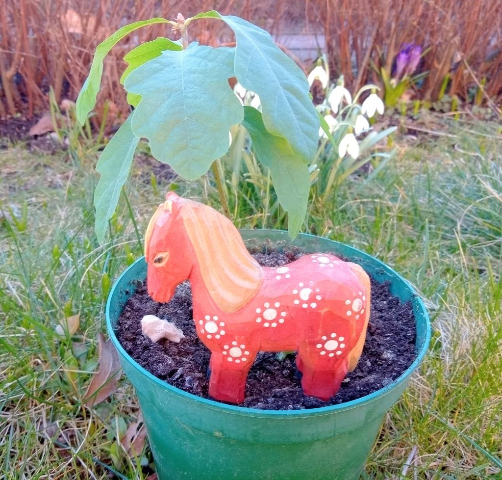 Idag är det Palmsöndagen som firas för att Jesus red in i Jerusalem på en åsna. Mycket folk hade samlats för att se honom och de viftade med palmblad för att hälsa honom välkommen. Jag tänkte jag skulle föra över detta till vårt land. Det är ju en svårighet att få de gamla bibeltexterna att passa in i vår tid som är 2000 år senare. Så åsnan får bli en smålandshäst och palmbladen får bli blad från en ekplanta. Jesus och allt folket får vi lägga till i vår fantasi. Nu inleds Stilla Veckan. Då är det meningen att vi, om vi har möjlighet, ska stanna upp och tänka på existentiella och andliga frågor. Kanske hittar vi svar på våra frågor, kanske inte. Antingen eller så tycker jag det är fint att vi kan ägna en vecka om året till detta.