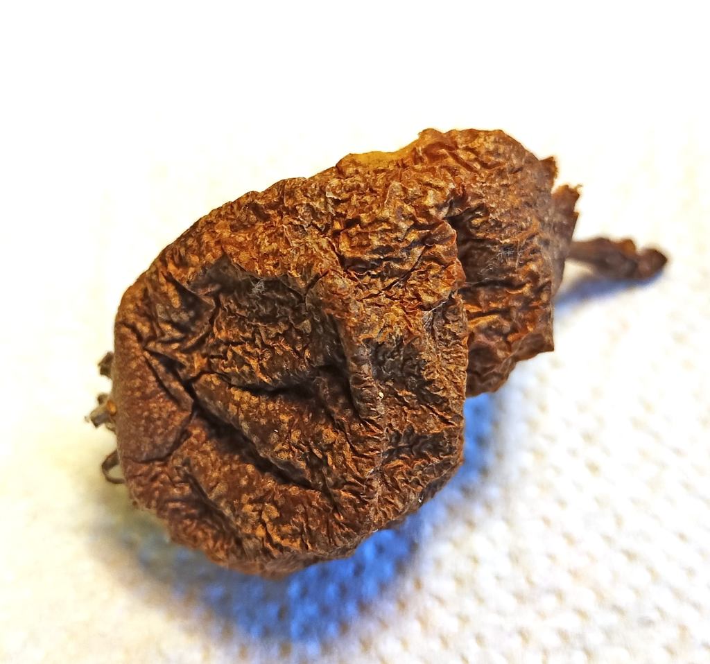 Ett förtorkat päron hittar jag under soffan. Det har nog legat där länge och är ju alldeles för gammalt att äta. Jag tänker att först var det ett skott bland många på ett päronträd, sen blev det en befruktad blomma som mognade till ett gott päron för att sedan, tyvärr, skrumpna och slängas. Så kan det också vara med idéer och tankar. De börjar med ett tankeskott som successivt mognar till en tanke som omfattas av alltfler allt eftersom tiden går. Efter en tid, lång eller kort, mister tanken sin kraft och aktualitet, skrumpnar bort och blir oanvändbar. Exempel är häxprocesserna som kyrkan och prästerna trodde på. Det kostade många kvinnor livet. Idag är den tanken skrumpnad och bortkastad. Så här i efterhand kan vi fundera över varför just präster, av alla, trodde på häxor och inte förhindrade att de brändes. Tanken att jorden är platt och att någon varje kväll tänder stjärnorna är egentligen en vacker tanke som känns trygg och stabil. Men idag är den skrumpnad och kastad på soptipp. Som barn trodde man på tomten. Det var så roligt när han kom på julafton och sa håhåhå och delade ut julklappar. Nu är den tron borta och kommer aldrig tillbaka. Förr bestämde kungen mer eller mindre allt men idag är det folket via riksdagen som bestämmer. Kungamakten finns numera skrumpnad på historiens soptipp. Säkert har du egna idéer och tankar som du slängt, befriat dig från och gett dig ett rikare liv.