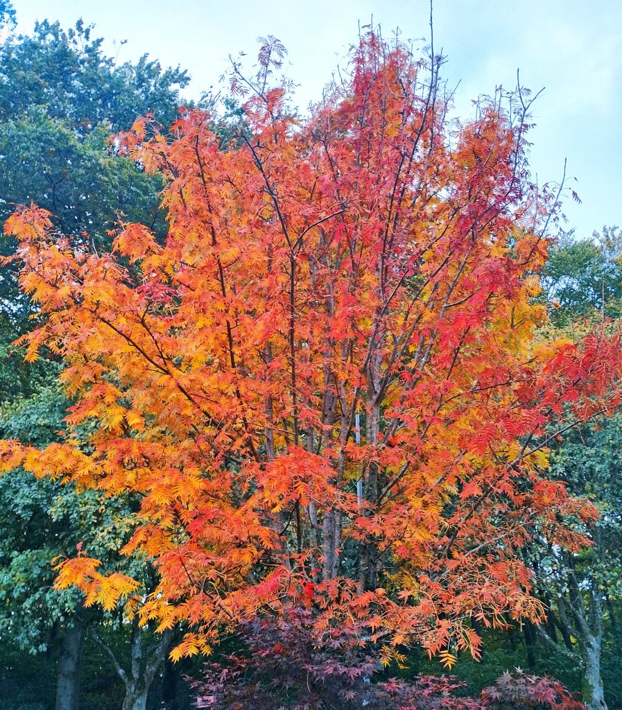 Nu börjar löven glöda på träden. Det är ett säkert hösttecken som ger naturen härliga färger. Det kan kännas som en tröst när kvällarna nu blir allt mörkare och temperaturen börjar att sjunka. Den här rönnen har jag glatt mig åt på höstarna och gör det fortfarande. Jag tog bilden med min mobil. Det går säkert att hitta en mycket bättre bild med AI. Men jag föredrar originalet framför AI. Jag har börjat titta lite närmare på AI och blir både imponerad och skrämd av allt som går att göra. Risken är att det inte går att se vad som är verkligt eller skapat i en dator. Detta är bara början och jag undrar hur det ser ut om något år. En koll på nätet om vilka filosofiska frågor som känns viktiga nu toppar ”Kan AI vara medveten och ha ansvar?” Jag tycker det känns som om AI sakta med säkert börjar bli någon form av människa som tagit plats i datorn eller telefonen. Jag funderar på vad Sokrates sagt om detta. Han menade att varje människa i sitt inre har en röst som talar om vad som är rätt och att det gäller att vara uppmärksam på den och lyssna noga. Jag tror aldrig att AI kommer att få någon sådan inre röst som tänker. Men tänk om AI också får en sådan röst. Antingen eller så kommer jag att varje höst fortsätta att glädja mig åt den färgstarka rönnen. Oavsett av AI tycker och tänker!