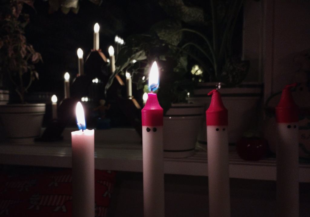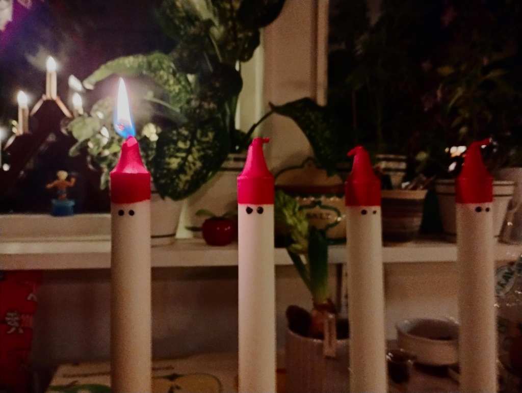 Nu är det adventstider. Det första ljuset är tänt. Jag tycker ljusen med enkelt tomtemotiv är smått originella och kunde inte motstå dem. Första ljuset kan, om vi vill, få stå för många första gånger vi alla varit med. Kommer ni ihåg när ni cyklade själva för första gången? Den upplevelsen kommer aldrig tillbaka. Samma sak med första gången man körde moped som lycklig 15 åring. Med tiden blev det rutin och kändes inte så märkvärdigt längre. Första blyga och trevande kyssen kommer aldrig tillbaka. Men naturligtvis kommer mycket annat tillbaka med full gläjestyrka. När första adventsljuset tänds känner nog många av oss samma upprymda glädje som när vi var barn och visste att julen närmar sig.