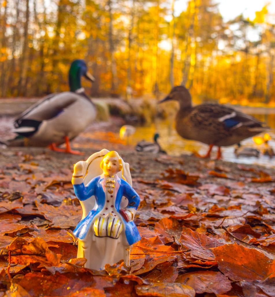Den här porslinsfiguren har jag haft i många år. Den har en vana att då och då dyka upp från ingenstans. Jag stoppar då ner den i någon låda som jag sen glömmer av. Så då dyker den upp igen. Jag blir irriterad och stoppar ner den någonstans som jag så klart glömmer. Det blir någon slags rundgång. Jag funderar på om jag ska slänga den i soptunnan eller skänka den till någon secondhand butik. Men det blir det nog inte för jag märker att jag på något sätt blivit bunden till den. Idag tänkte jag att den kan ju få komma ut och lufta sig i höstvädret och samtidigt göra lite nytta som ett objekt att fotografera. Jag tycker att den gjorde en fin insats. Den hade kanske väntat på detta tillfälle länge och så plötsligt kom stunden. Jag funderar på om det går att tänka i större perspektiv. Kanske är det så att många människor känner sig bortglömda, undanskuffade och de upplever att folk irriterar sig på dem. De väntar på att deras stund ska komma när de verkligen får visa vad de kan. Jag hoppas att de minst en gång i livet får uppleva att de står i centrum och blir beundrade.