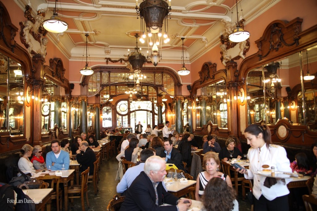 I ett samhälle är det viktigt att man har något att samla omkring som stärker gemenskapen. I slutet av 1800-talet var det fackföreningar, nykterhetsloger och frikyrkor som blev samlingspunkter för många. Man kände att man kämpade för; Bättre arbetsvillkor, nykterhet och tron på Gud i vardera sammanhang. På 70-talet var det för/emot kärnkraft som samlade folk till stora möten. På 90-talet samlades man runt för/emot EU. Jag är säker på att 95% av alla möten avlutades med kaffe. Kommer det folk och hälsar på hemma eller man blir bortbjuden så kan man vara säker på att det kommer att serveras kaffe. Denna dryck är som olja som smörjer samvaron mellan människor i stora såväl som mindre sammanhang. Bilden är från Café Majestic i staden Porto i Portugal.