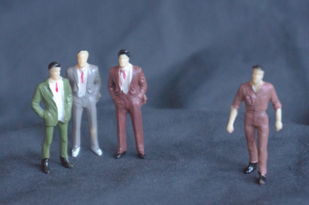 Filosofen Platon funderade över hur man kan avgöra vad som är rätt eller fel. Förmodligen en lika viktig fråga då som nu. Platon menade att om en enskild människa hävdar något är inte chansen så stor att hen har rätt, men den kan finnas och då är det en styrka att som enskild människa våga hävda sig mot den stora hopen! Fast om många har kommit fram till samma sak så är det nog rätt, fast inte helt säkert. Men det skapar ju trygghet och skön gemenskap att i en jättestor grupp samlas runt samma sanning. Det gäller speciellt i religiösa och politiska sammanhang. Men det kan vara så att någon eller några i gruppen innerst inne inte tror på den sanning gruppen försvarar. Men man tiger för att inte gå miste om gemenskapen. Bilden på miniatyrmänniskorna får visa hur någon lämnar gemenskapen för att gå sin egen väg.