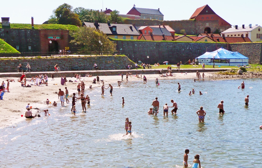 (Bild: Barnens badstrand i Varberg)