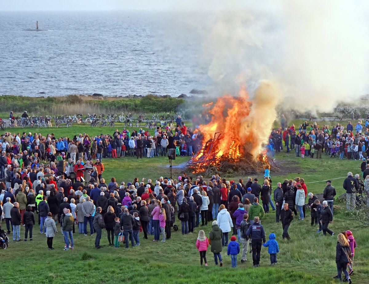 (Bilden från majbålet nedanför Rantzauklippan i Varberg)